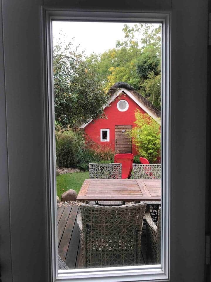 Garage, hier ist eine Extratür mit dem Waschtrockner.